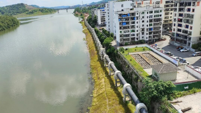 为补齐地下管网、地上排污治污设施历史欠账,我市实施城镇污水治理两年攻坚行动,构建“市级统筹、部门协同、区县主战”攻坚矩阵,围绕厂网建设、工艺升级、全域覆盖三大核心任务,统筹推进“污水+内涝+生态”三位一体治理,实现治理从“各自为阵”到“系统协同”转变。先后投入资金68.49亿元,实施攻坚项目100个,全市日均污水处理能力从42万吨增至71万吨,中心城区污水集中收集率从33%跃升至72.35%,16个污水溢流口实现清零,完成8个城市内涝点整治,兑现了城市“不再看海”承诺。图为仙鹤路沿州河接第三污水处理厂截污干管。